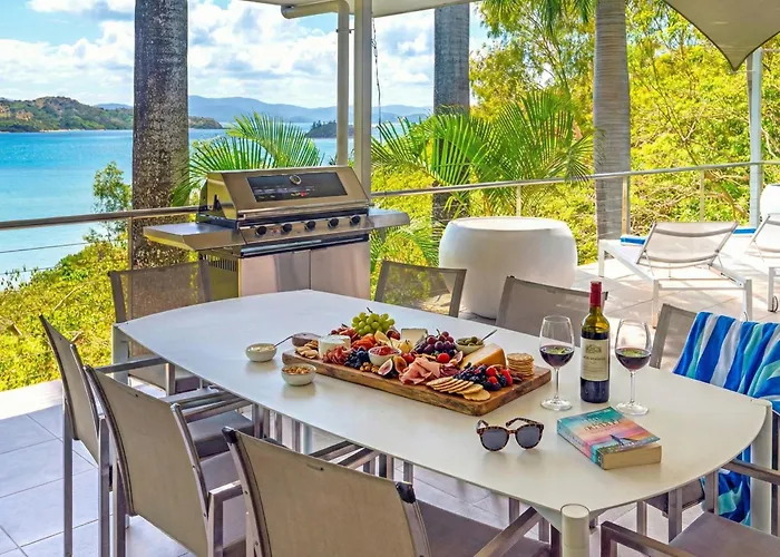 Die Villa New - Luxury Hamilton Island Estate With 2 Golf Buggies, Transfers & Ocean Views liegt in unmittelbarer Nähe zu Catseye Beach und bietet seinen Gästen die Möglichkeit, sich in der Umgebung beim Schnorcheln und Angeln zu vergnügen. Diese Villa in Hamilton Island verfügt über ein privater Parkplatz und eine Terrasse mit Aussicht aufs Meer.